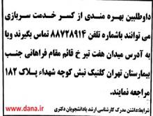 افراد می توانند جهت کسب اطلاعات بیشتر با شماره 88728914 تماس حاصل فرمایند.