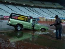 اما آنچه که از چشم عکاسان و خبرنگاران دور مانده بود؛ زمین گیر شدن خودروی اعزامی صداوسیما به این مسابقه بود همانطور که در این عکس کاملا پیداست خودروی صداوسیما تا گردن در آب فرورفته و کاری برای بیرون آمدنش از این آب نمی شود انجام داد. البته در نهایت خودروی یاد شده از آب بیرون آمده است و کسی غرق نشده، اتفاقی که خود جای شکر دارد!
