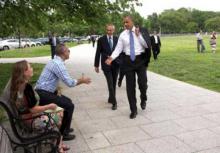 ساکنان واشنگتن، پایتخت، با دیدن رئیس جمهور آمریکا در حال قدم زدن در خیابان شگفت زده شدند.اوباما کت خود را با یک دست روی دوش انداخته بود و به مردم سلام می کرد.