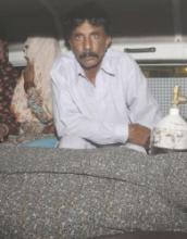 محمد اقبال، همسر فرزانه پروین، در آمبولانس کنار جسد همسرش نشسته است. فرزانه پروین در لحظهای که سنگسار شد، سهماهه حامله بود.