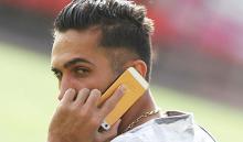 به «آیفون» او دقت کنید! (صادقیان گوشی را برعکس گرفته است.)