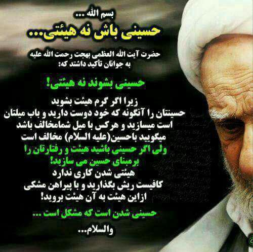 حضرت آیت الله العظمی بهجت: حسینی باش نه هیئتی
