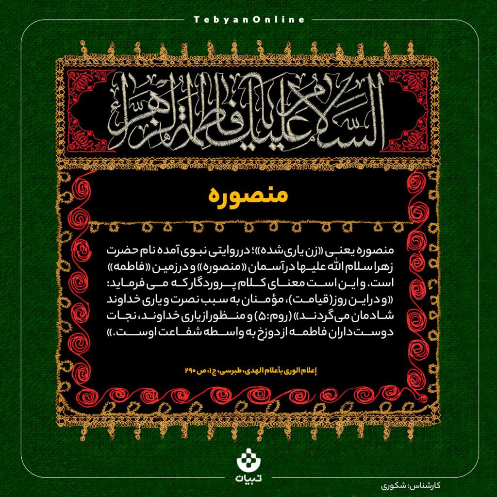 ، یکی از لقب های مشهور حضرت فاطمه سلام الله علیها منصوره است.