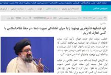 خاتمی در ادامه با تاکید بر این که حفظ نظام اسلامی خط قرمز مردم است ، گفت: از بیان شما مردم می گویم که ما در حفظ نظام اسلامی با هیچ کسی تعارف نداریم و در مسیر حمایت از نظام اسلامی تا آخرین نفر، آخرین نفس و تا آخرین قطره خون ایستادهایم. صاحبان تریبون که چه قلم به دست دارند و چه بیانی دارند مراقب باشند که تریبون آنها با تریبون ضد انقلاب یکی نشود که شریک جرم می شوند. متاسفانه در این حادثه هم برخی از کسانی که نان نظام را خوردهاند با اغتشاشات همصدا شده اند. هنوز هم دیر نشده است شما که به راحتی بیانیه صادر می کنید اکنون بیانیه داده و اغتشاشات را محکوم کنید. از همه عزیزانی که روزگذشته در مشهد ، همدان، زنجان و ورامین راهپیمایی خودجوش راه انداختند و اغتشاش را محکوم کردند سپاسگزارم. امیدوارم که پیام راهپیمایی با شکوه سراسر کشور را اغتشاشگران دریافت کنند. اگر امروز این پیام را دریافت نکنند فردا دیر است. ملت قاطعانه از مسئولان قوه قضاییه میخواهد کسانی که به مردم رحم نمیکنند و اموال آنها را آتش زده و قرآن میسوزانند را با سلاح قانون سر جای خودشان بنشاند.