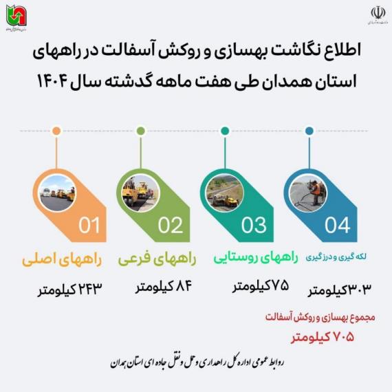 به گزارش پایگاه خبری تحلیلی «آوای سیدجمال»، از ابتدای سال ۱۴۰۴ تاکنون، با فعالیت مستمر ۱۸ گروه عملیاتی، در مجموع ۷۰۵ کیلومتر از راههای شریانی، اصلی، فرعی و روستایی استان همدان بهسازی و روکش آسفالت شده است.