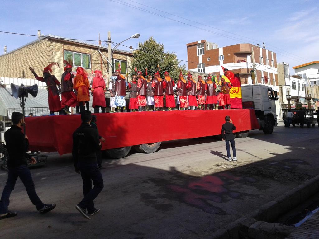 هیئت دارالشفای اسدآباد با برگزاری دسته عزاداری واقعه کربلا را روی تریلر به تصویر کشیده و به مراسم تعزیه خوان ی و سینه زنی پرداختند